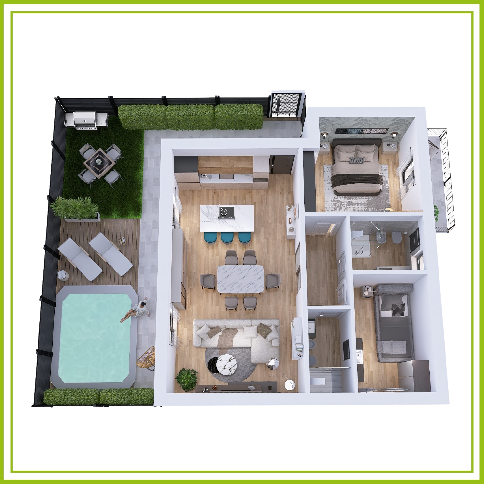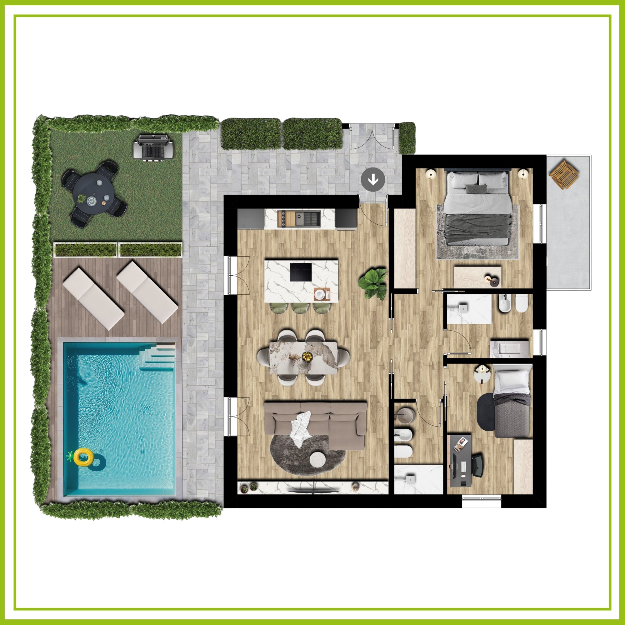 La rappresentazione semplice ed intuitiva per un'immediata comprensione degli spazi. Perfetta per chi cerca un layout essenziale e completamente personalizzabile, da adattare al proprio stile.